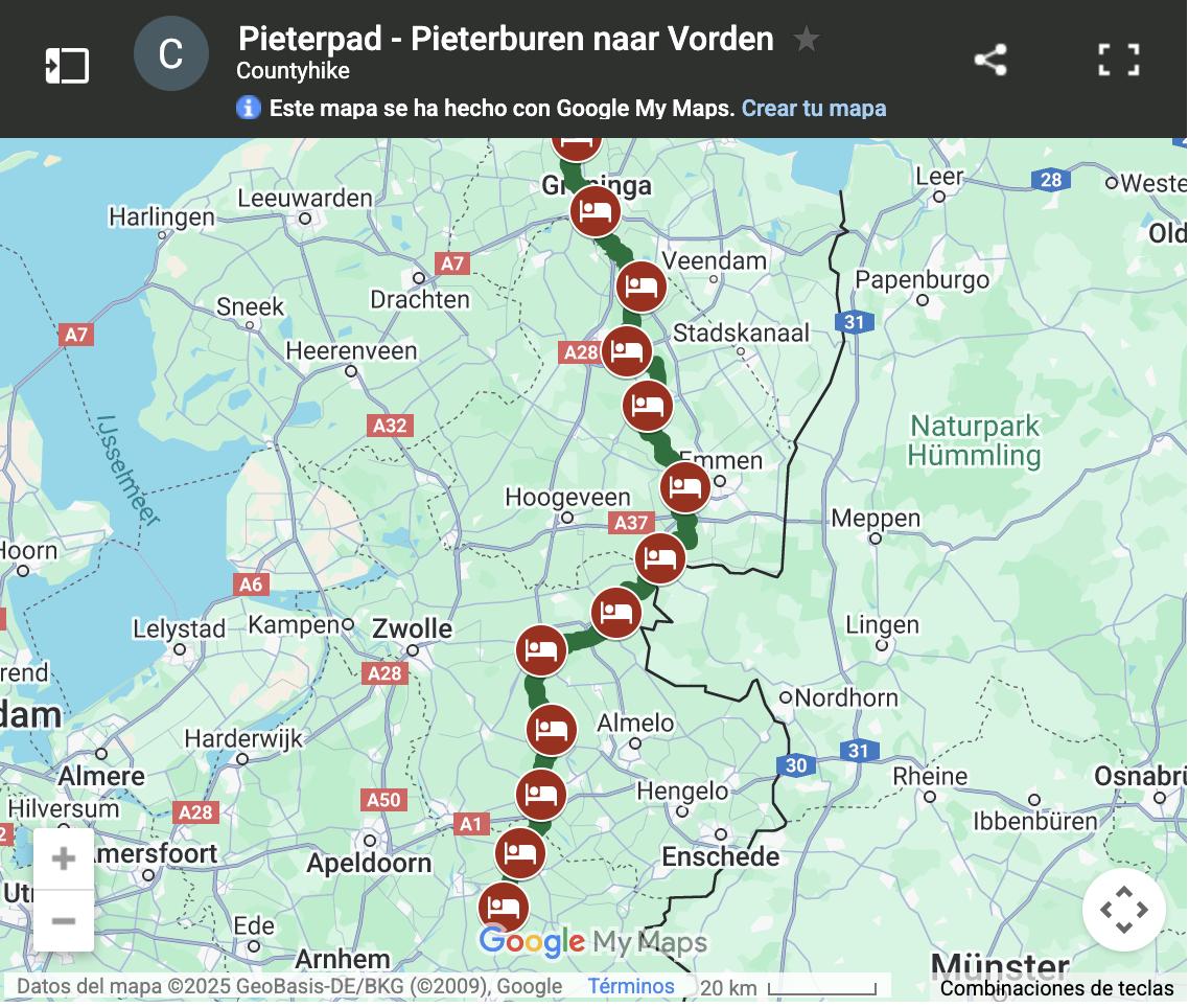 Saliendo de la “ciudad de los gansos”, Coevorden, entras en la maravillosa naturaleza de la Poort van Drenthe (la Puerta de Drenthe), anunciada por una escultura de piedra con ese mismo nombre. Al dejar atrás Drenthe, entras en la provincia de Overijssel, siguiendo el valle del río Overijsselse Vecht.En Gramsbergen puedes disfrutar del pintoresco centro histórico, con casas restauradas con mucho encanto y una estatua de bronce que representa a los caminantes del Pieterpad.